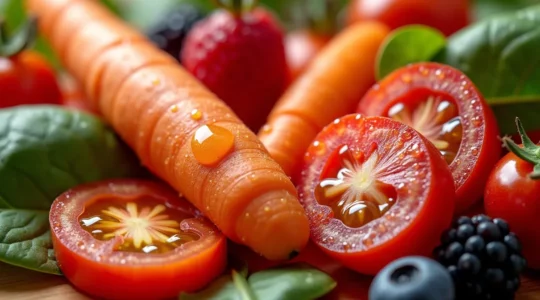 Les caroténoïdes (bêta-carotène, lycopène, lutéine) donnent leur couleur orange, rouge ou jaune aux fruits et légumes. Ces pigments végétaux s’accumulent dans la peau et la protègent contre les dommages UV tout en améliorant l’éclat du teint. Des études montrent qu’une consommation régulière de caroténoïdes confère une teinte dorée naturelle, souvent perçue comme plus saine qu’un bronzage.